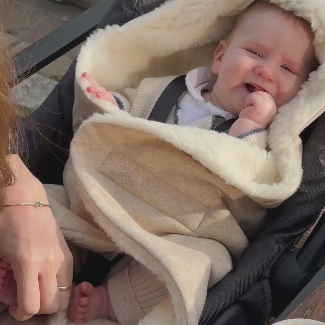 La copertina avvolgente di Oh!Possum abbraccia il tuo bambino in modo sicuro e protetto – fin dal primo giorno di vita.